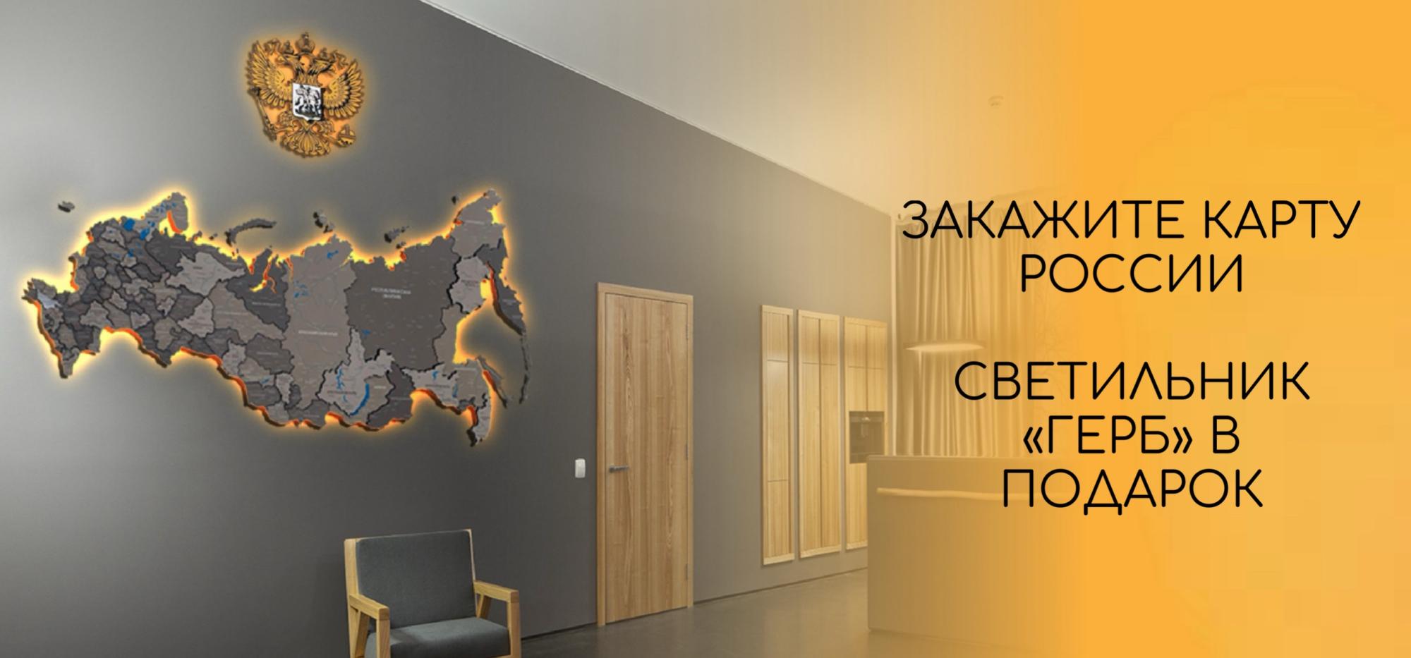 Карта России светильник ГЕРБ в подарок